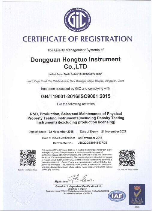 宏拓儀器通過ISO9001:2015質(zhì)量體系管理認(rèn)證,通過國家計(jì)量測試中心全面質(zhì)量與性能檢測,獲得國家計(jì)量器具型式批準(zhǔn)CPA證書,參與起草制定: 【GB/T 1040.1-2025塑料 拉伸性能的測定】、【GB/T 1634.1-2025塑料 負(fù)荷變形溫度的測定】、【GB/T 44559.1-2024塑料 硬質(zhì)塑料沖孔性能的測定】 、【GBT 43139-2023鑄造鋁合金液減壓凝固試樣密度檢測】......等標(biāo)準(zhǔn)。